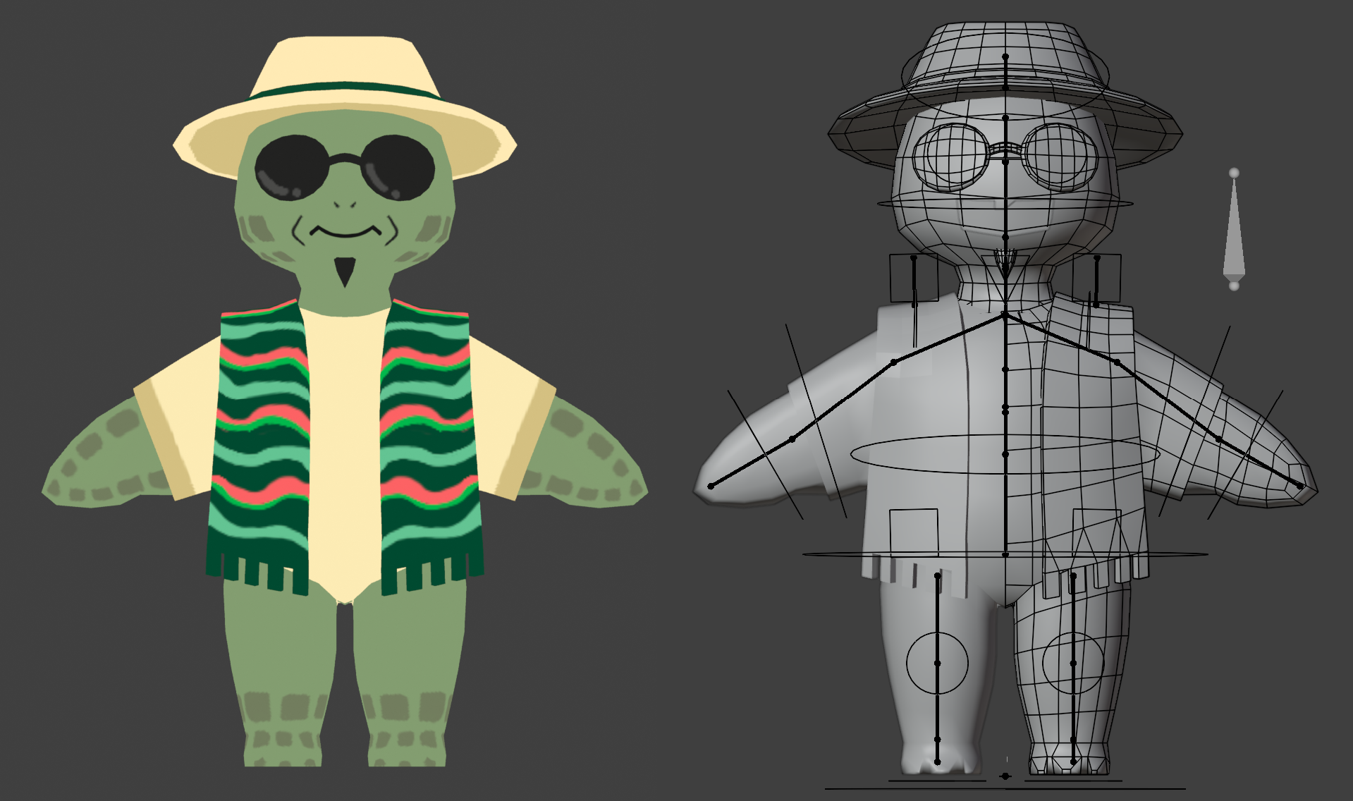 Used Maya and Blender to create dynamic and animator-friendly rigs for 3D characters including IK/FK switches, independent hips, and python-driven facial expressions.